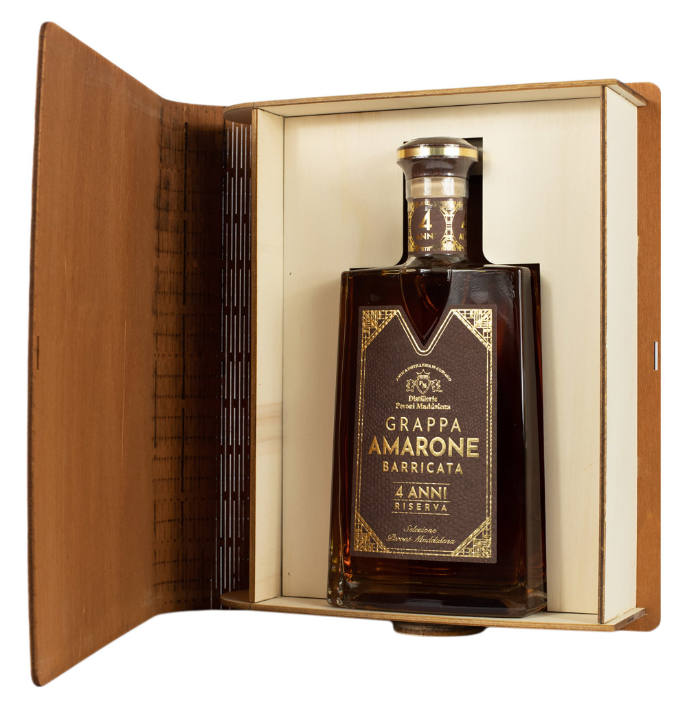 Ottenuta dalle migliori vinacce d’uve Corvina, Molinara e Rondinella in caldaiette di rame con il sistema tradizionale discontinuo a vapore. Invecchiata in piccole barriques di rovere francese per 4 anni.