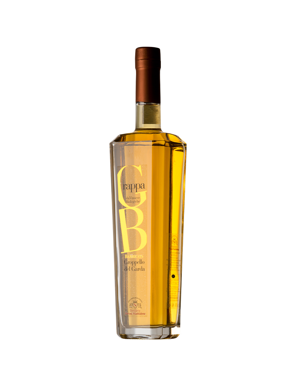 Ottenuta da vinacce biologiche di Groppello del Garda maturata oltre 12 mesi in barriques di rovere francese allier. Colore: giallo oro intenso.
