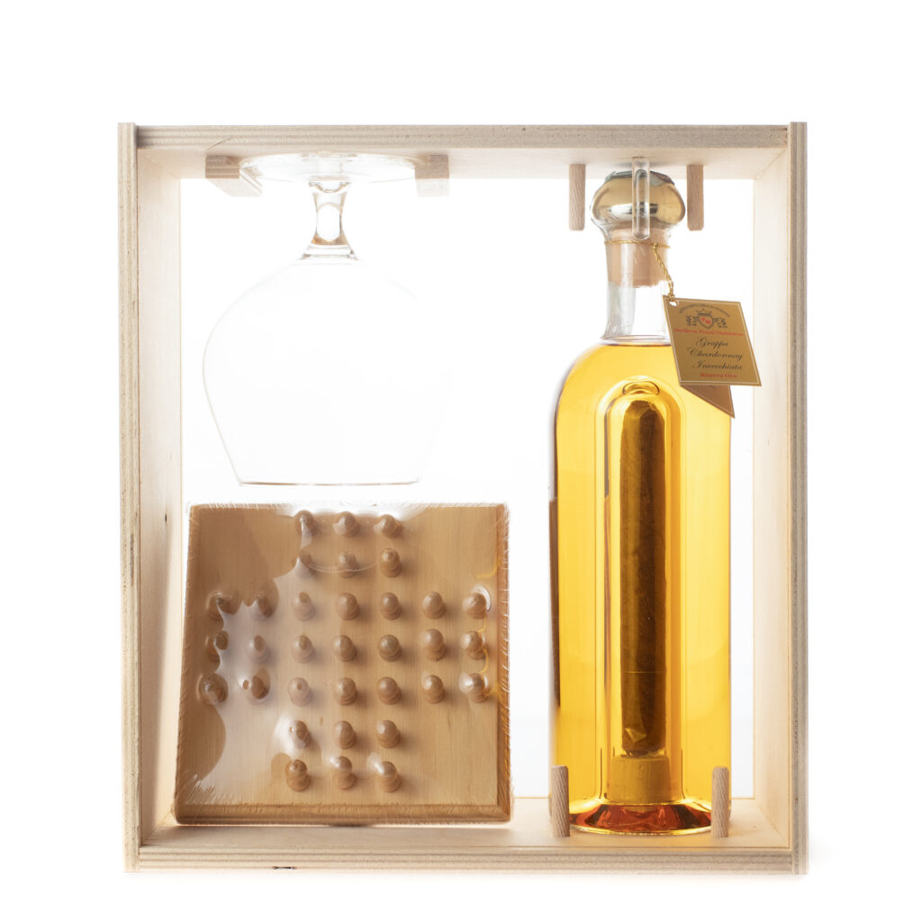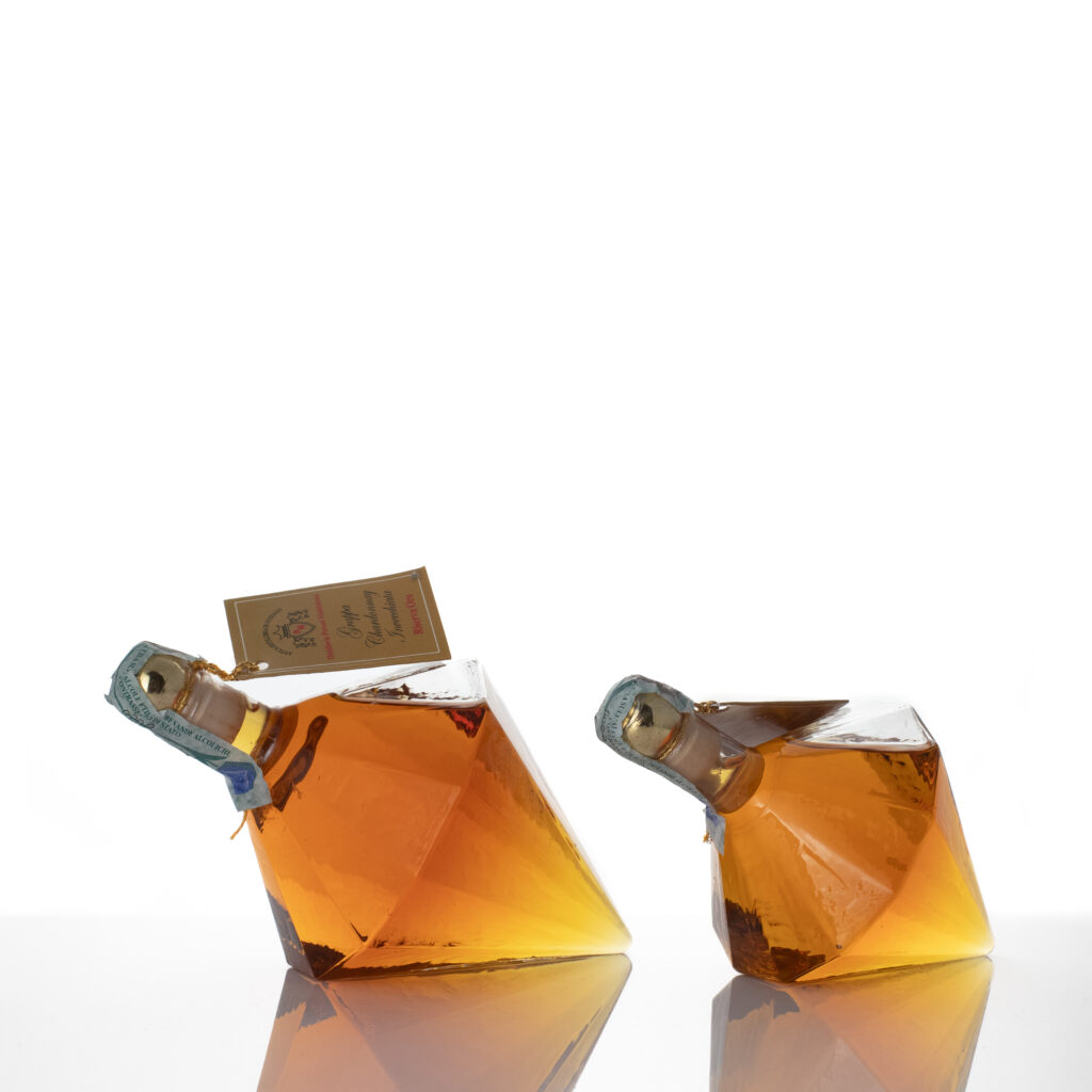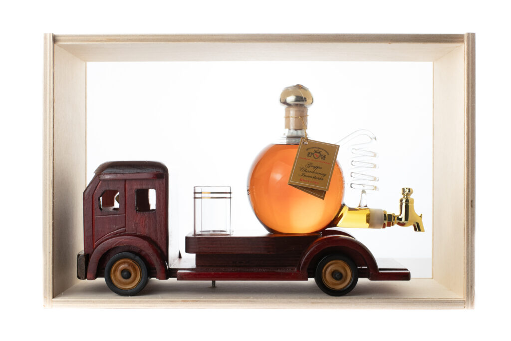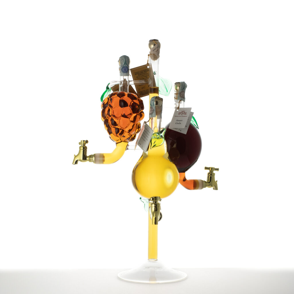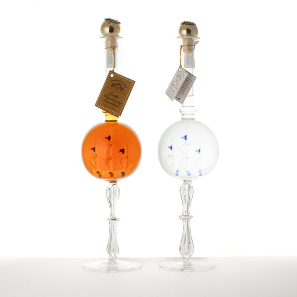 Il vetro soffiato può assumere forme e funzioni innumerevoli; per le Distillerie Peroni Maddalena vengono prodotti artigianalmente vetri decorati e coniati in centinaia di forme, pensati e disegnati per imbottigliare la grappa Distillerie Peroni Maddalena. Semplicemente considerati decorativi, soprammobili o bottiglie, la famiglia le ha trasformate anche in splendide, uniche e rare bomboniere.